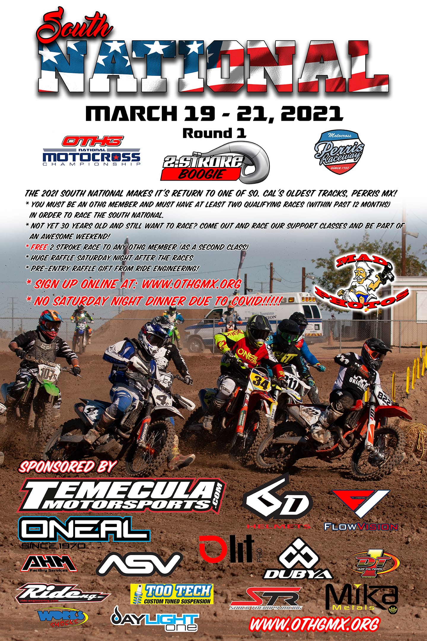 The 2021 Over The Hill Gang South National returns to one of the oldest tracks in Southern California, Perris Raceway! The event will take place March 19-21. Per our previous formats, that means Friday practice followed by two days of hard racing!