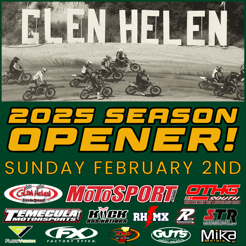 It’s time to get the 2025 season underway! Our first round of racing will take place February 2nd on the Glen Helen Raceway NATIONAL TRACK. Glen Helen will also be the site of the 2025 South National this coming June, so we are getting right into it. As most everyone knows, this facility always offers a great layout that makes use of the massive elevation changes. We can’t wait!